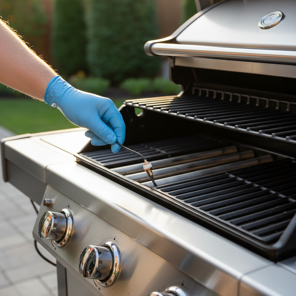 - Brush the Burners: Use a Safe Grill Brush (Bristle-Free) or a wire brush to clean the burner tubes, paying special attention to the small holes (ports) where the gas exits. A paperclip or thin wire can be used to clear individual clogged ports.