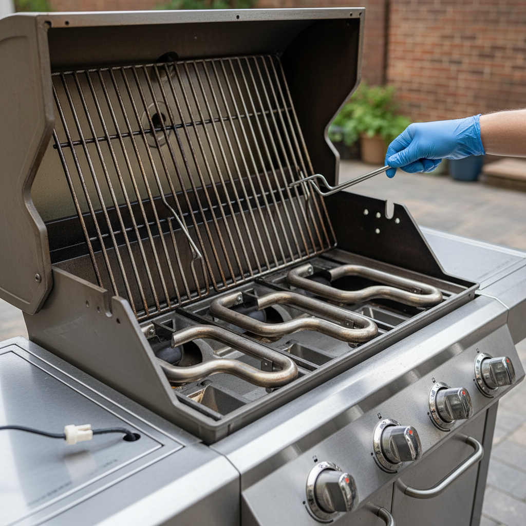 - Remove Grates and Flavorizer Bars: Access the burner tubes.